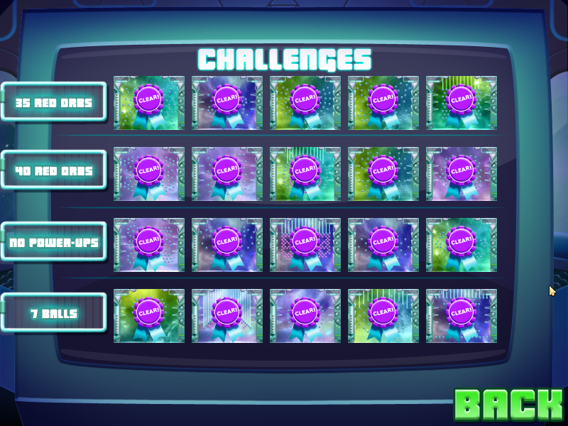 Classic mode takes us through ~50 maps of varied orb breaking goodness, which will probably take players around three hours. Upon completion, Challenge mode is unlocked with 20 extra high-difficulty maps. For these, you'll need to clear 35 red orbs, 40 red orbs, work with no power-ups and clear levels with only 7 starting balls. Additionally, Classic mode "hard" is activated after the first playthrough. So all in all, players could expect somewhere around seven hours of gameplay to fully complete the game. Desire for completion is aided by a modest trophy "achievement" system, with 15 different tropies to quench one's desire for positive reinforcement.