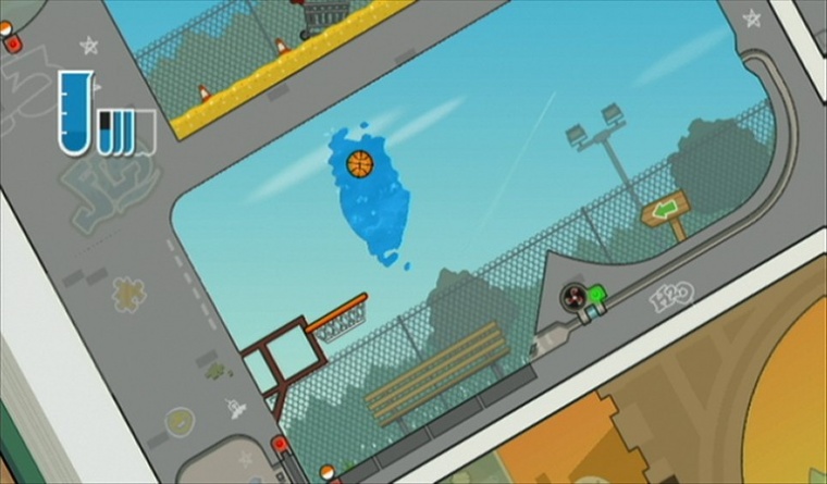 Ability acquisition is the one way that the Metroidvania feel is infused into Fluidity. You begin the game as puddle of water, tilting the Wii remote to slide across the ground and shaking to make the liquid jump. The puddle learns a few tricks through the adventure, and you'll also gain the option to freeze into a block of ice or boil into a cloud of vapor, each of which has its own tiny upgrade path as well. By the game's halfway point, you'll have access to all three states of matter and their extra frills, using each to make your way through the puzzle-filled environs. The goings can be a bit tedious when you need to switch between water and ice and vapor at designated temperature stations in order to make your way to the next unsolved puzzle, but the connectivity between each puzzle panel does contribute to a sense of travel that I prefer to the linear, stage-by-stage route that the designers could have taken.