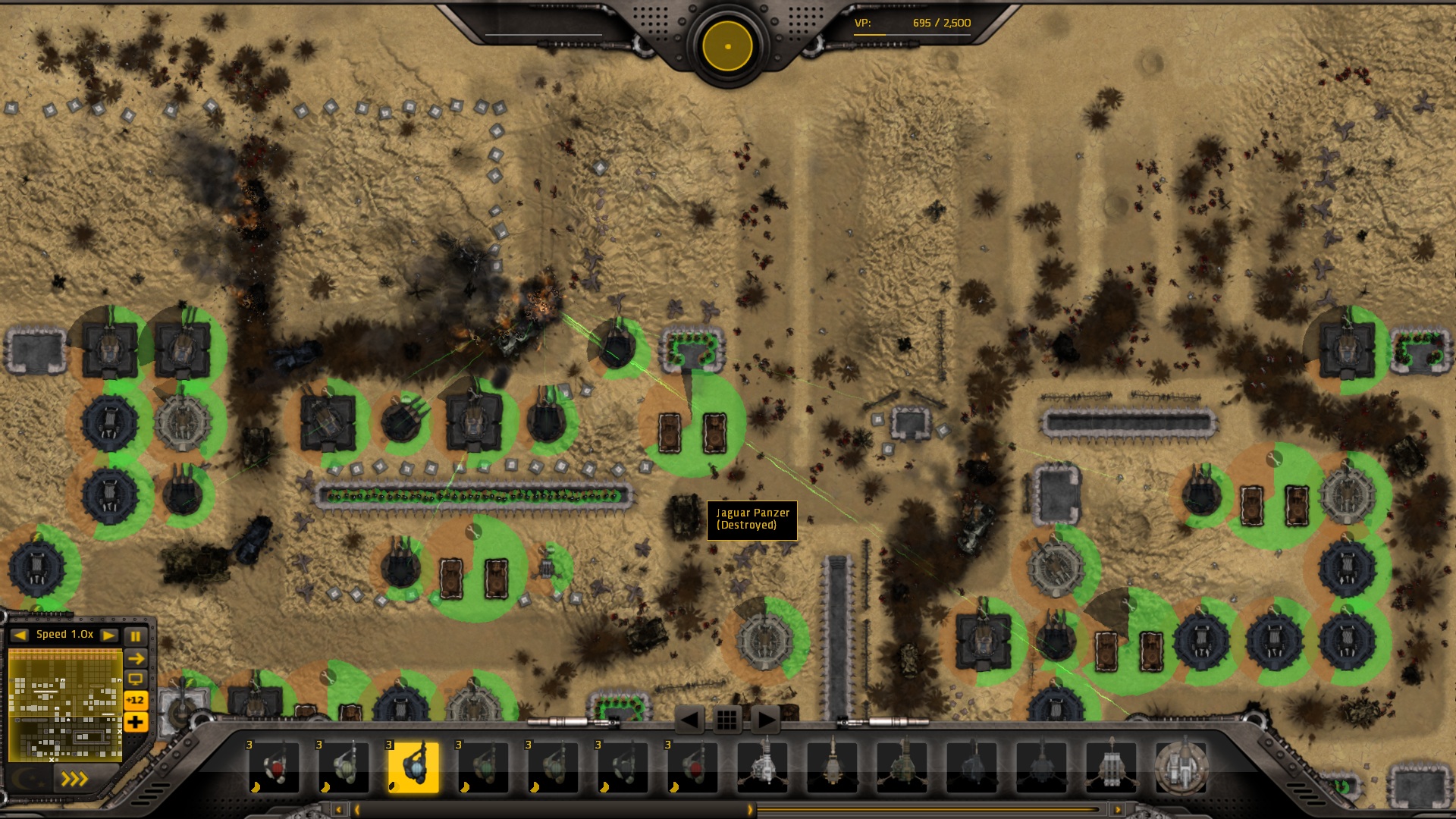 Gratuitous Tank Battles is a unique take on tower-strategy mechanics, created by a man who clearly has a strong attention to detail. This article will be covering both the base game, released this past May, and its expansion The Western Front, which is being released this today on Steam. Both are developed by Positech Games, which is more or less known as Cliff "cliffski" Harris. At first glance, GTB appears to be a standard tower defense game covered in a fine finish, but things quickly become more complicated. For a bit of background reading, we do also have a preview of the game which goes over the basics from a different point of view.