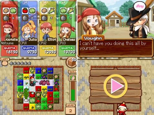 What you can't imagine them spinning off though is a fast-paced puzzle game set in the Harvest Moon world, but they've tried twice already. Natsume's first attempt was Puzzle de Harvest Moon in 2007, a game I played for about 20 minutes before getting bored. The game was received poorly, I guess there just aren't a lot of gamers begging for a mediocre puzzle game based on crops.
