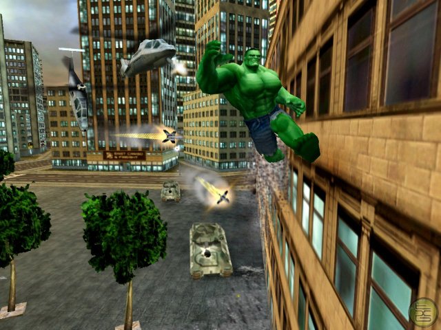 Hulk looks good. Everything else is a little blocky and the frame rate is low. It drops, of course, when there's tons of stuff flying, but if that much stuff was breaking, the frame rate would drop in real life too. No, the problem is that the standard frame rate is low, and makes the game look a little jerky. The physics are quite impressive for the consoles it was on, allowing nearly everything in the game to be bashed around.