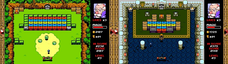 Many of Wizorb’s other frills beyond the Breakout core are merely genre and arcade staples that are smartly melded into the RPG/adventure context. Bonus rooms and mid-level shops are accessed by collecting and expending dungeon keys. Extra lives and other helpful augmentations can be bought with collected gold.
