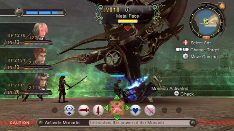 As good as the story is, combat is easily the biggest highlight of the game. Even in the realm of action RPGs, Xenoblade's battle system is a robust, refreshing design that places a large emphasis on teamwork, positioning, and timing. Because of how involved and fast-paced combat can be, control is limited to one character, with AI taking command of your companions (up to two). Fear not—the AI is pretty good about using the appropriate abilities for a given situation, and that's without the generic commands you can issue if things get disorganized. You can change who you control at any time outside of combat, but I feel Shulk is the most obvious choice, as the rewards for his proper control are far too great to leave in the hands of AI.