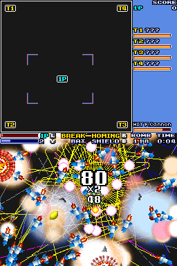 But today's subject is Bangai-O Spirits, a critically-praised title that didn't sell very much (as expected), though chalk up one more sale for Treasure: the $8.75 price tag on Amazon was an offer I couldn't refuse. This 2008 DS title is a sequel of sorts to the Dreamcast's Bangai-O (and its lesser-known, Japanese-exclusive N64 counterpart). True to Treasure's modus operandi, Bangai-O Spirits challenges the player to battle through 150+ stages filled with overwhelming swarms of enemy missiles and bullets on-screen. The game also features two- to four-player wireless cooperative and competitive battles and a robust set of stage editing and sharing features.