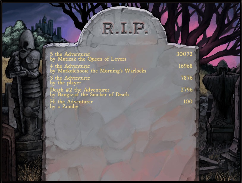casual/non-permadeath settings, and an exponential scoring system