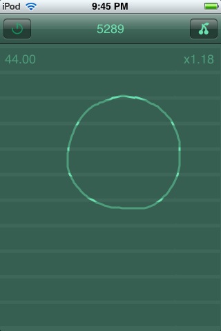 The objective of Circle Challenge is to draw circles. It really does not get any simpler than that. You're presented with a green grid and the timer starts, begin drawing circles until time runs out. For it to count, a circle must close, and you can get an extra flourish multiplier for leaving a bit of tail hanging off the end of your line. Sometimes, the cherry button will light up and if you tap that and draw your circle around the cherry on the screen, you'll get an even bigger bonus.