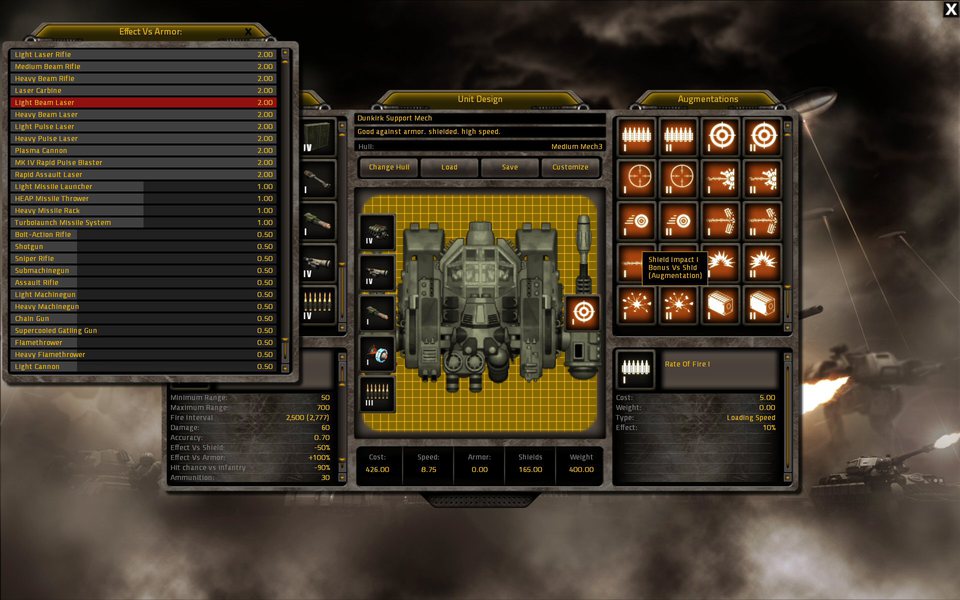 Honestly my favorite part of the game so far is the sound design. Zoomed out there’s a heavy, march-to-war soundtrack that fits the feel of the game perfectly, but zoom down into the action and the music fades out to give the vast array of sound effects center stage. Every bullet and laser can be heard, mechs stomp on the ground, and infantry scream death rattles. It’s hugely entertaining and highlights how much Cliff Harris cares about the details. If you can spare a moment in this hectic game, take a closer look, and listen, to the action.