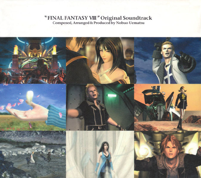 Final Fantasy VIII's soundtrack begins and ends with two of the series' most defining tracks. "Liberi Fatali", the attention grabbing, big orchestra, choral piece immediately sets the stage for both the game and soundtrack. Extensively used in advertising, "Liberi Fatali" has become the defining song of Final Fantasy VIII and also opened up every Final Fantasy concert in the Dear Friends tour. This and "Fithos Lusec Wecos Vinosec" were Uematsu's first foray into recording actual voices for a soundtrack and were met with huge success.